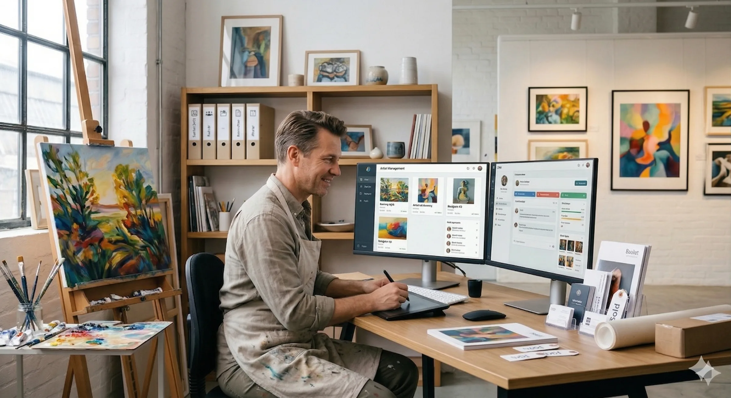 Fra værkarkiv og AI-genererede scene billeder til prislister og fakturaer. KunstApp er lavet til kunstnere, der vil arbejde mere samlet og mere professionelt.
