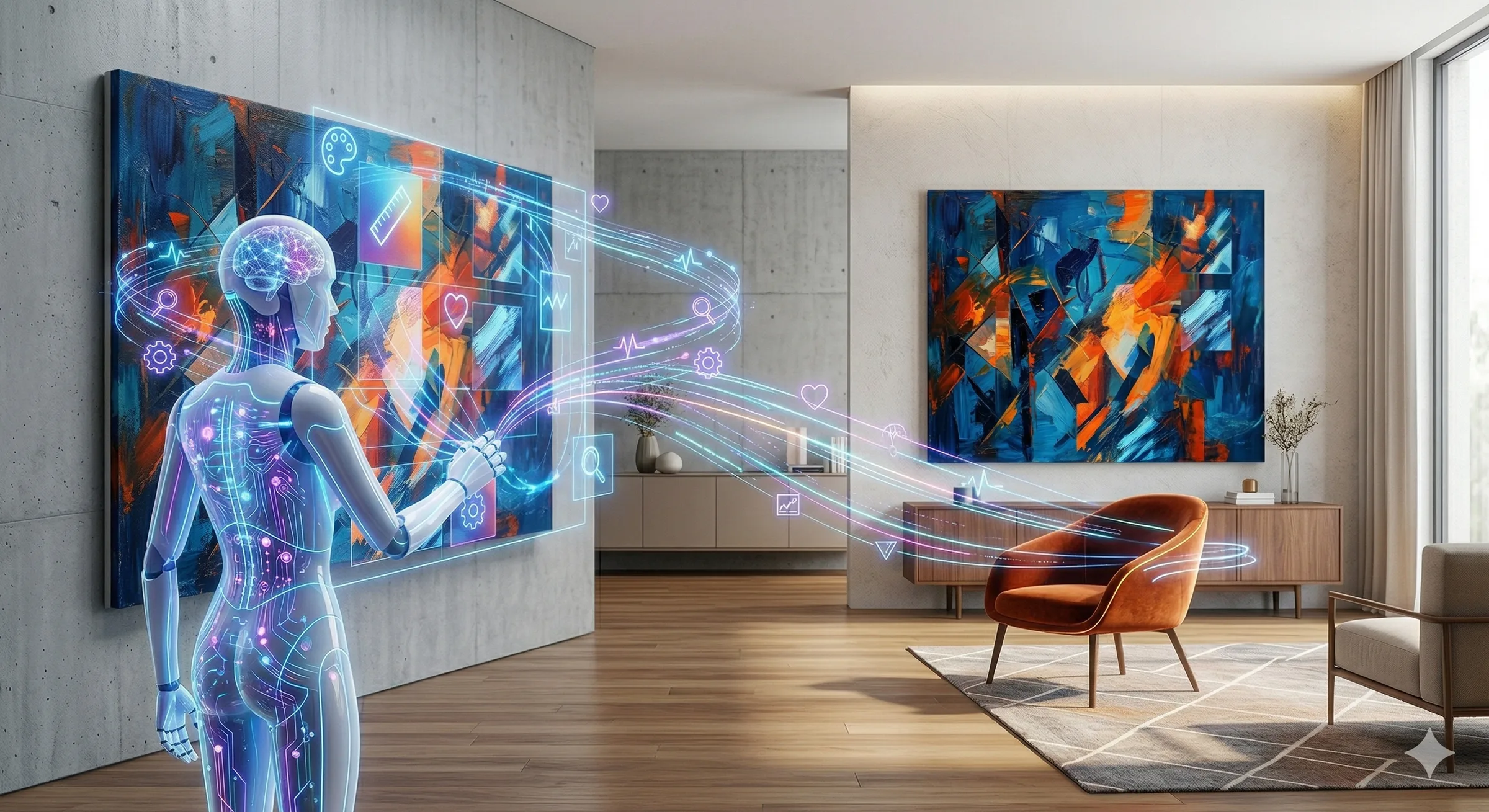 Skab boligscener, beskrivelser og SoMe-opslag med AI, der tager højde for materiale, skala og værkets karakter ud dine kriterier.